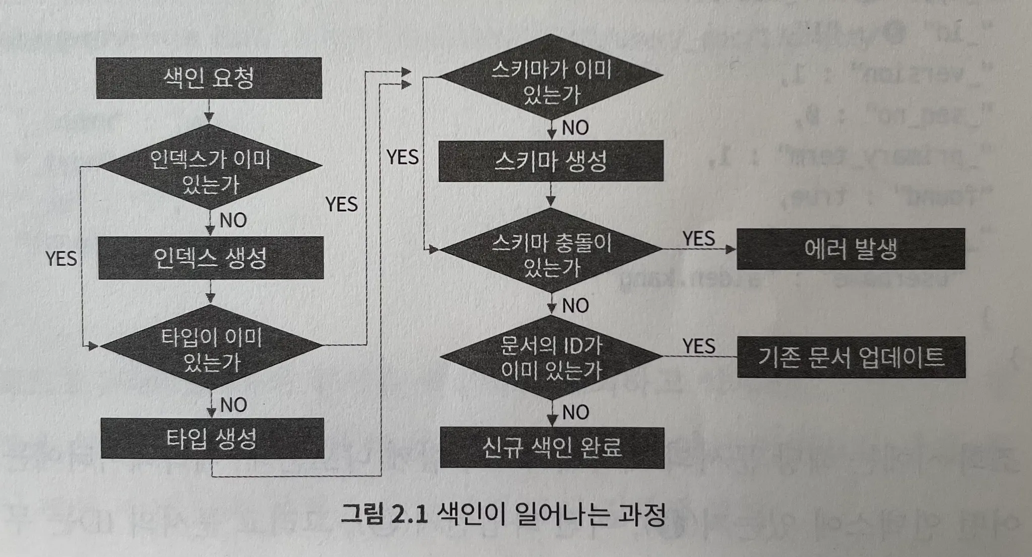 Elasticsearch에서의 색인은 인덱스 생성, 타입 생성, 스키마 생성을 동반한다.