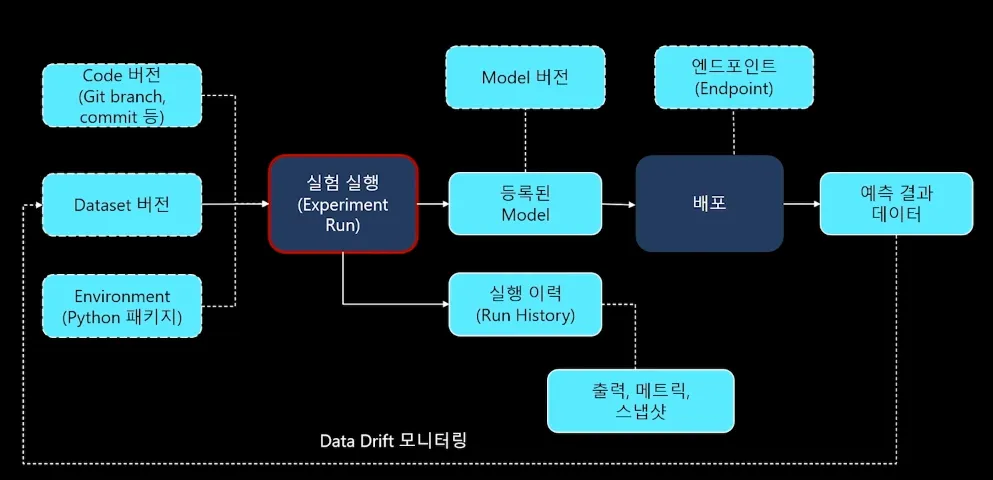 ML 생애주기에서 보라색, 파란색, 하늘색 부분에 집중